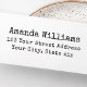 Devolva o carimbo de endereço que contém o seu nome e apelido/nome da família com o endereço abaixo numa fonte de estilo de máquina de escrever vintage