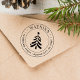 Uma árvore de Natal moderna no centro com nome circular e carimbo de tinta automática de endereço.