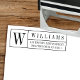 Este clássico carimbo de endereço de retorno de autoimpressão apresenta uma caixa com três seções, uma para o seu monograma, uma para o seu sobrenome e outra para o seu endereço. Trata-se de uma nova e moderna tomada de posse do clássico carimbo de endereço de regresso. Os selos de ida e volta autossuficientes são muito convenientes e fazem um maravilhoso presente para o lar também. Personalize-o simples com as suas informações e selecione a cor de tinta!
