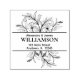 Simples carimbo de autoimpressão de endereço de retorno com uma fronteira floral proeminente que delimita um nome e endereço associados. Clara em negrito, fácil de ler. Adequado para todas as necessidades de atendimento de retorno, tanto pessoais quanto comerciais. Totalmente personalizável. Entre em contato para ajudar com personalizações para ajustado de suas necessidades.