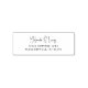 Simples e elegante endereço de retorno de casamento, com autoimpressão, com os seus nomes na letra do roteiro manuscrito e o seu endereço em sans serif.