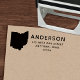 Este moderno carimbo de endereço de retorno de autoimpressão apresenta uma forma de estado de Ohio, seu nome e seu endereço. Este selo de volta, que se autointitula, faria um maravilhoso presente de aniversário ou feriado para qualquer um. Também é muito conveniente para envelopes em qualquer época do ano. Personalize-o simples com as suas informações e selecione a cor de tinta!