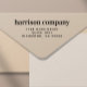 Carimbo de endereço de retorno profissional para a sua empresa que apresenta o seu nome comercial em negrito e mínimo de tipografia moderna e endereço em simples tipografia.