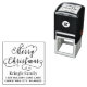 O carimbo personalizado de autoimpressão apresenta Feliz Natal no escrevendo de scripts com endereço de retorno que pode ser personalizado.