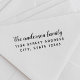 Carimbo de endereço de retorno com tinta automática personalizado com nome de família personalizado em script de pincel de mão rústico.