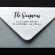 Devolva o carimbo de endereço que contém o seu nome de família num script de retrografia na moda e o seu endereço em letra simples.
