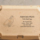 Um simples Carimbo de Autoimpressão de endereço de retorno apresenta uma ilustração artística de uma codorniz japonesa (Coturnix japonica) e nome ou empresa personalizados e endereço para suas cartas, pacotes e muito mais. Ideal para fazendas familiares, mercados de comida, compradas de mercearia e retalhistas de comidas premium.