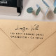 Carimbo de endereço simples e na moda, em estilo moderno de design minimalista, com uma tipografia de escrita na moda natural a preto clássico, com letra de escrita manual informal. O texto pode ser facilmente personalizado para um design tão único quanto você!