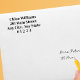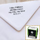 Um simples carimbo de endereço de retorno de 4 linhas em uma fonte serifada. Este carimbo serviria para uso pessoal ou comercial.