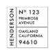 Carimbo de endereço simples e na moda, em estilo moderno de design minimalista, com tipografia contemporânea e linhas divisórias clássicas (verticais e horizontais) a tinta preta. O texto pode ser facilmente personalizado para um carimbo único do tipo para o seu próprio endereço, incluindo o número de propriedade, rua, cidade, estado e CEP.