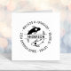 Um elegante carimbo de endereço para um casal com um simples peixe koi preto e branco circulando um ao outro criando um símbolo Yin Yang estilizado. O nome da família é escrito na ilustração enquanto os primeiros nomes e o endereço são impressos à sua volta. Observe que talvez seja necessário ajustar as informações digitadas adicionando ou excluindo alguns caracteres ou espaços para alinhar o nome e o endereço.