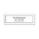 Um carimbo de endereço simples com nome e endereço com borda retangular fina.