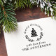 Carimbo de saudação personalizado com mensagem de saudação de Natal no topo da árvore de Natal e bagas.