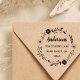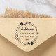 Este selo de borracha personalizável, com simples tipografia, caligrafia moderna e uma coroa floral rústica.