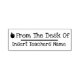 Uma fonte divertida do quadro tem uma pequena maçã ao lado dela e uma linha horizontal divisória que separa o título "da mesa de" e o nome do professor.