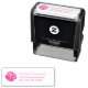 Carimbo autopicante com seu nome em uma fonte ousada e moderna. Uma ilustração de rosa de rico de à esquerda dos detalhes de seu endereço.