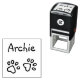 Um pequeno selo de autocolante com assinatura de animais de estimação. Design inclui um nome impresso com estilo de escrita manual e uma ilustração fofa das impressões de pata. O nome de exemplo Archie pode ser facilmente personalizado e substituído pelo nome do seu animal de estimação. Se você olhar atentamente, também descobrirá dois corações que estão lá para simbolizar seu amor por seu incrível animal de estimação.