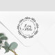 Carimbo de retorno de autocolante circular, concebido por medida personalizada, com coroa botânica desenhada à mão e caligrafia elegante à mão. Perfeito por adicionar um pouco de estilo rústico aos seus convites de casamento, cartas, favores e presentes.