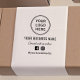 Selo promocional para o seu negócio com o seu logotipo, o nome da sua empresa e o seu identificador de mídia social do Facebook e do Instagram para que clientes se conectem com você online.
