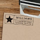 Este clássico carimbo de endereço de retorno de autoimpressão apresenta uma caixa com três seções: uma com ilustração de estrela rústica, uma com seu sobrenome e outra com seu endereço. É divertido pegar o clássico carimbo de endereço de retorno. Este selo de retornar autossinuoso faria um maravilhoso presente de aniversário ou feriado para qualquer texano, ou simplesmente para qualquer pessoa que goste do olhar do país rústico. E é muito conveniente para envelopes de férias. Personalize-o simples com as suas informações e selecione a cor de tinta!
