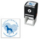 Carimbo com ilustração de cão num estilo gravado. Tons de tinta azul, o melhor para o que você tentar anunciar