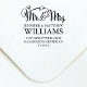 Design de endereço de retorno de casamento de chic rusticado apresenta palavras ousadas e divertidas, escritas à mão, Sr. e Sra. Calliografia, digitação de tipografia de roteiros e sotaques de design. Personalize o elegante monograma personalizado com seu sobrenome casado e devolva o texto do endereço para seu dia de casamento casual.