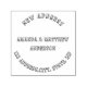 Mudamos, devolva o adesivo de endereço. Personalize e adicione seu nome de família, seu novo endereço. Texto curvo. Fundo branco, texto preto.