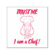 Cabeça de chef com chapéu, corcunda vermelha e texto personalizado.