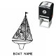 Um design de barco à vela com um toque náutico. Mude o nome do barco para personalizar.