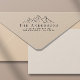 Devolva o carimbo de endereço com montanhas e o nome e endereço da sua família em uma simples tipografia moderna.