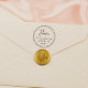 Um belo carimbo de endereço de retorno com o seu nome familiar em letra chic script. Abaixo, seu endereço ou detalhes de contato são impressos em tipografia simples sans serif. Uma moldura de rabisco desenhada à mão forma um círculo à volta do texto. Visite nossa loja para mais selos de devolução!