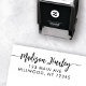 Carimbo simples e na moda, com design de tipografia minimalista moderna, com o seu nome personalizado na caligrafia manuscrita com espirais bonito (mantenha os espaços ao lado dos nomes intactos para que as espirais permaneçam). Personalize com o seu nome e endereço e esta será uma maneira bonito e fácil de se autodirigir à sua papelaria em preto e branco clássico, eterno!