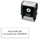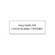 This self-inking stamp is a text template for a registered nurse to stamp his or her name and license number onto documents. The top line is printed text for your name. The bottom line of display text is for your RN license number.