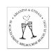 O carimbo de endereço romântico e festivo apresenta o(s) seu(s) nome(s) e endereço de retorno ao redor de duas flautas de champanhe unidas por um coração efervescente. Uma doce escolha para casamentos e noivados!