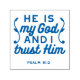 Minimalist yet powerful Bible verse typography based on Psalm 91:2, declaring “He is my God and I trust Him.” Perfect for Christian apparel, church merch, faith stickers, and home wall art.