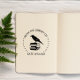 O Carimbo Ex Libris Personalizado apresenta um corvo com silhueta de livro e fontes sans-serif clássicas. Personalize este belo rascunho da biblioteca de selos de borracha personalizados com o seu nome.