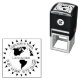 Este selo de autoimpressão apresenta um design circular único e aventureiro. No centro está uma imagem da Terra, com a palavra "Geocacher" mostrada de forma destacada sobre ela. "Item de assinatura" é curvo em um arco no topo, enquanto as coordenadas GPS de um local de cache estão na parte inferior. Uma borda de setas negras arma todo o selo, fazer-o como uma ferramenta perfeita para marcar seus achados e deixar sua marca na trilha.