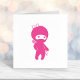 Ninja de desenho animado bonito está vestida de preto, mas para um pequeno arco sobre sua máscara de cabeça. A espada tradicional japonesa katana pode ser vista em cima do ombro.