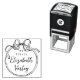 A modern book stamp with a retro twist! This book stamp features a whimsical retro bow frame, "ex libris" in serif font, and your name in modern calligraphy. Perfect for book lovers, librarians, and teachers. This is the self-inking rubber stamp - choose the color option according to your preference! A wood handle version of this stamp is available in my store. View the collection linked on this page for more custom book stamps.