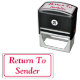 Este simples design de carimbo contém a mensagem "Return To Sender" (Retornar ao remetente). Pode ser usado para indicar que o correio recebido foi entregue no endereço errado ou que o destinatário é desconhecido e deve ser devolvido ao remetente.