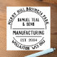 Carimbo da empresa de fabricação. Fabricante Carimbo de Borracha. Nome da Empresa, Tipo de Negócios, mais Duas Linhas de Endereço em um efeito circular. Um carimbo de empresa para todos os tipos de artigos de papelaria, envelopes, embalagens, etc. Coloque seu endereço de retorno de forma fácil e elegante.