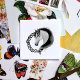 Um perfil do lado do cavalo marrom com nó celta tribal funciona em círculo num pano de fundo amarelo