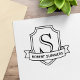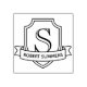 Simples ilustração de um escudo com uma fita inicial sobreposta por um nome. Personalize com suas próprias informações.