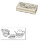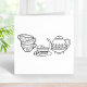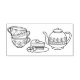 Uma pilha de ornamentados ao lado de um belo bule decorado. Um pedaço de bolo em um prato completa esse jogo de chá.