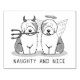 Covões Ingleses Velhos e Malvados - Diabos de Cartoon e Ovelhas Ovelhas e Bonitas Ovelhas em Papais noeis e belas listas...vestindo fantasias de cães de chifres, garfo, asas e halo. Copyright © Angi Laframboise. Dons engraçados de cachorro de Natal para amantes de cães.
