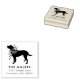 Um selo de borracha quadrado personalizado com a silhueta de um cão embelezado com flores e vinhas, e seu nome e endereço personalizados. Adição perfeita a todos os seus artigos pessoais e envelopes. Excelente também para convites de festas e cartões de evento.