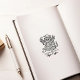 Este selo de borracha apresenta uma coruja de formando fofa com livros e um nome personalizado.
