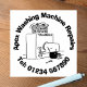 A divertida Cartoon de Instalação e Reparação de Máquinas Domésticas tem uma imagem de um homem de manutenção com sua cabeça dentro uma máquina de lavar! Personalize com o nome da empresa e o número de contato.