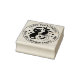 Carimbo de Halloween para os presentes de Halloween e favores de Halloween com Feliz Halloween da sua família, escrito em texto curvado em torno de uma reunião assustadora de criaturas de Halloween: um gato, um corvo, três morcegos e uma abóbora sorridente. Carimbo de arte de madeira de Halloween com uma bela ilustração de um corvo sentado numa abóbora ao lado de um gato negro com o cheio de morcegos e estrelas.