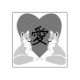 Dois estêncil gatinho (raposa) virado para dentro, sobrepondo um coração vermelho de amor. Sobre o coração está a palavra ai em personagens japoneses significando amor, cuidado e afeto.
